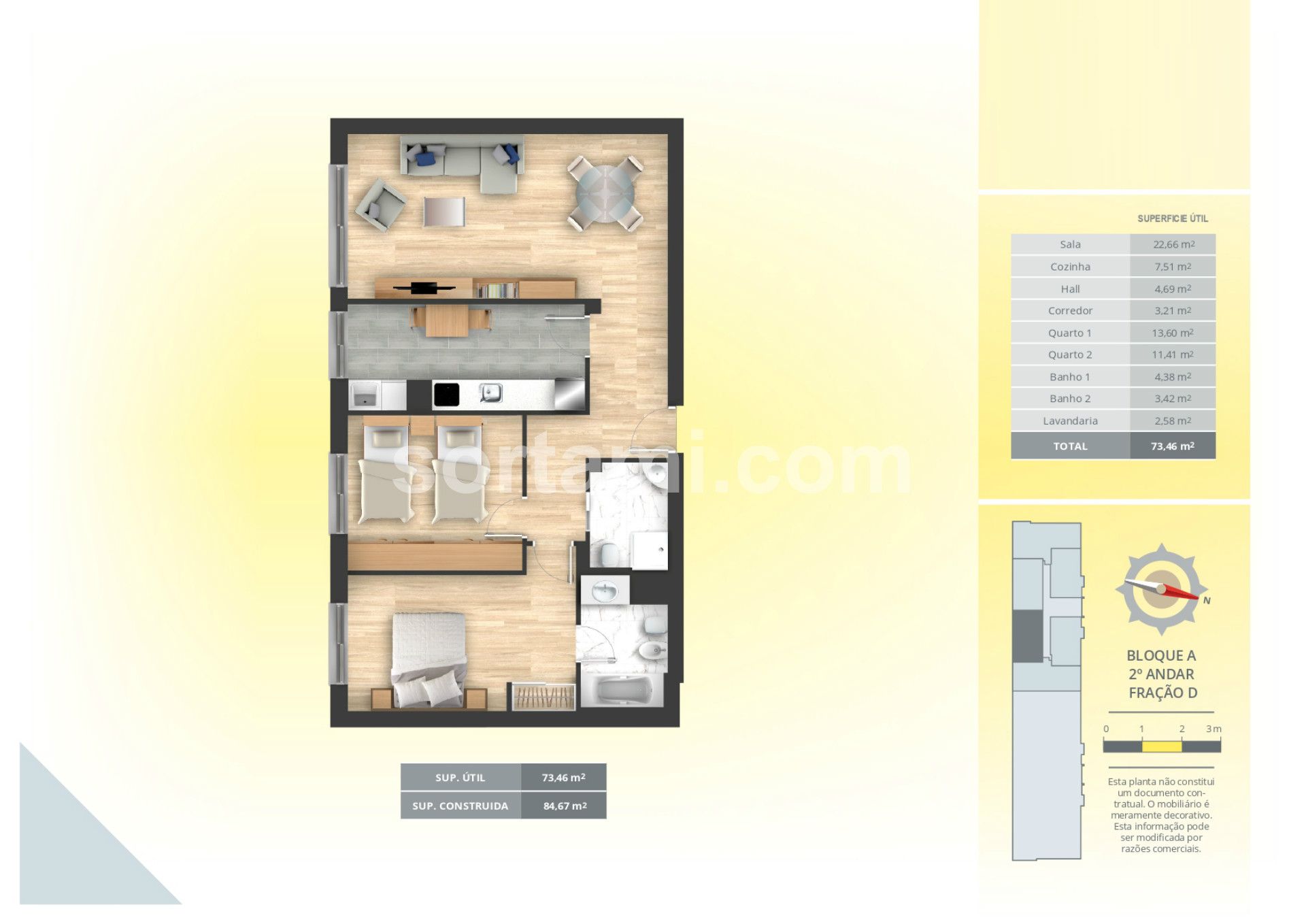 Located near accessibility roads, it has around it a set of support infrastructures, such as public transport, traditional commerce, green spaces, which make it an excellent investment as a first home and / or as an investment for profitability!